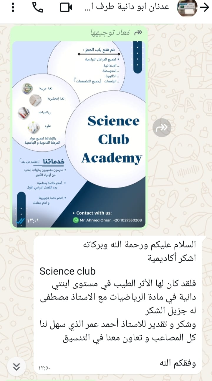 أكاديمية النادي العلمي (Science Club Academy) مؤسسة تعليمية وبحثية تقدم منظومة متكاملة من خدمات التعليم والتدريب والبحث العلمي لجميع المراحل.